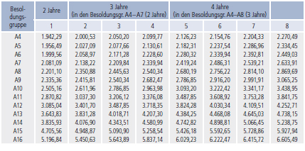 hin zu Erfahrungsstufen (Grundgehaltstabelle von 12 auf 8 Stufen reduziert) vorzunehmen.