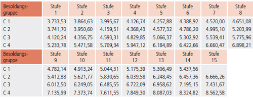 Besoldungstabelle C – ab 01.01.2021 (Monatsbeträge in Euro)